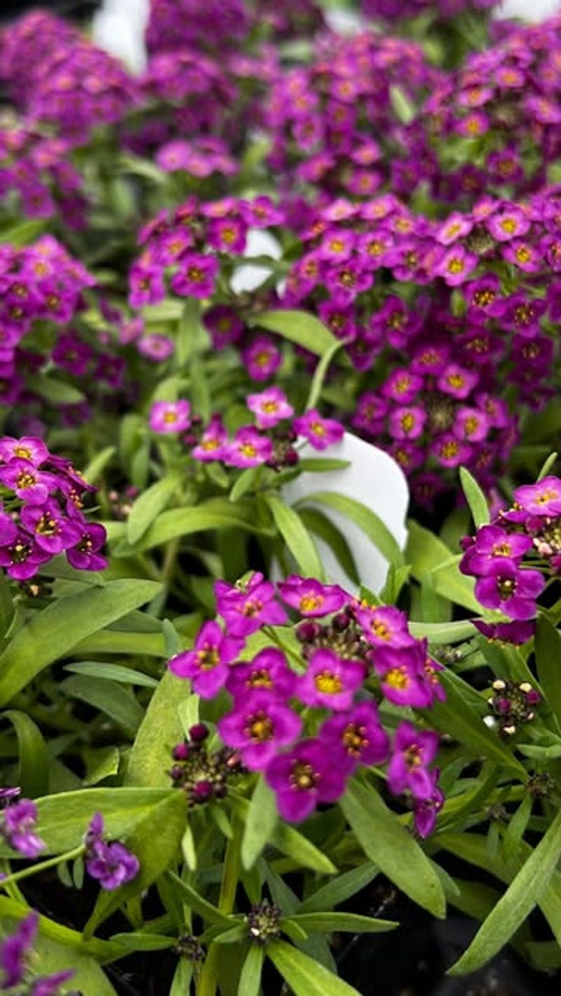 Alyssum ‘Royal Carpet’ spills with tiny purple blooms that smell like honey and form dense, ground-hugging mats. It’s a low-growing annual that makes a big impression in small spaces.