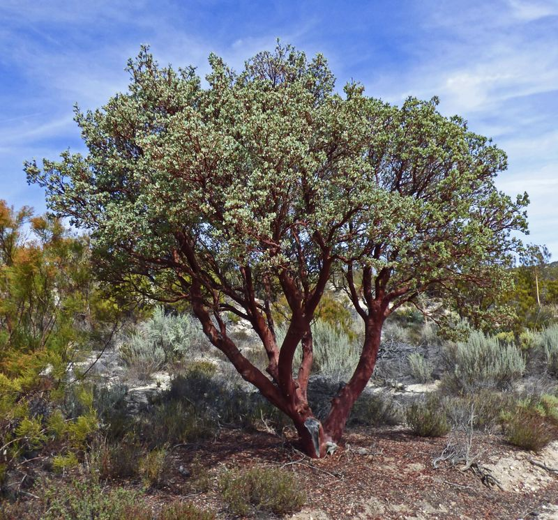 Walk through almost any dry California foothill or coastal scrubland and you will likely spot the distinctive smooth, reddish-brown bark of a manzanita.