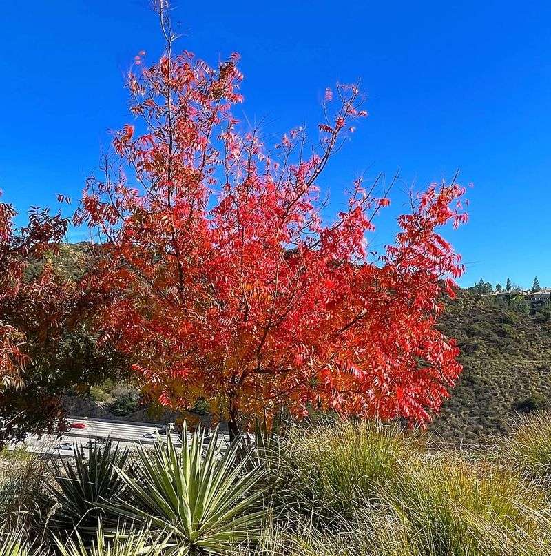 California landscapes come alive when Chinese Pistache trees ignite in autumn with electric oranges, scarlet reds, and golden yellows. This deciduous shade tree handles heat, drought, and poor soil better than most ornamentals, making it a smart choice for challenging garden spots.