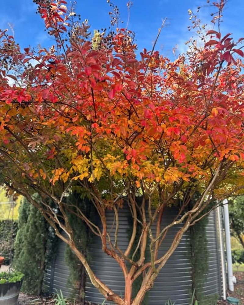 Dwarf varieties work beautifully in containers or small spaces while still delivering that signature color transformation. The fruit adds edible interest, and the twisted branches create sculptural winter silhouettes.