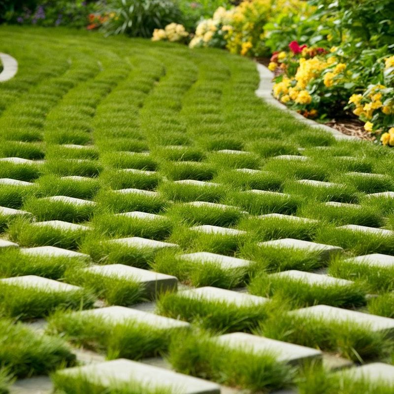 The sophisticated herringbone pattern brings a touch of elegance to any lawn with its distinctive V-shaped rows. This classic design has been used in everything from Roman roads to hardwood floors!