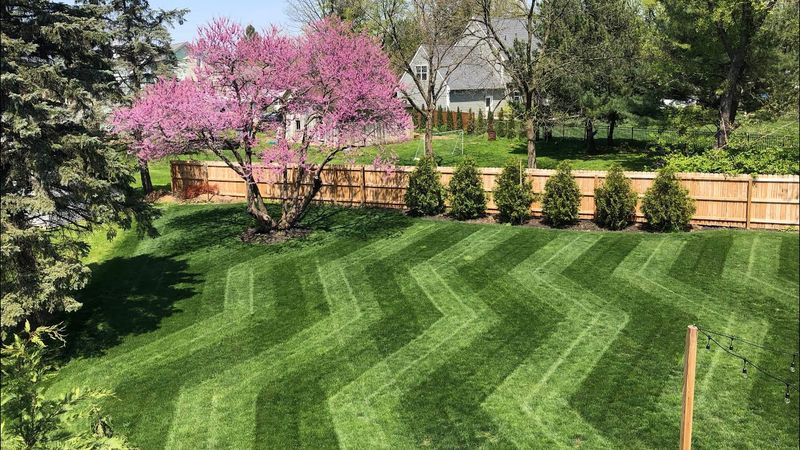 You’ll need a mower with a roller attachment that presses the grass down after cutting. Simply mow in straight lines across your lawn, turn around, and mow back in the opposite direction. Each pass creates one stripe, and the contrast between rows makes the pattern pop.