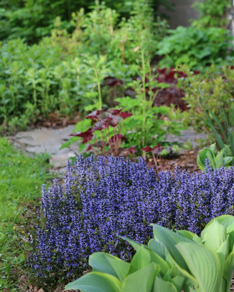 Ajuga, also known as bugleweed, is like a living carpet for your garden. Its dense growth and colorful foliage make it a strong weed suppressor.