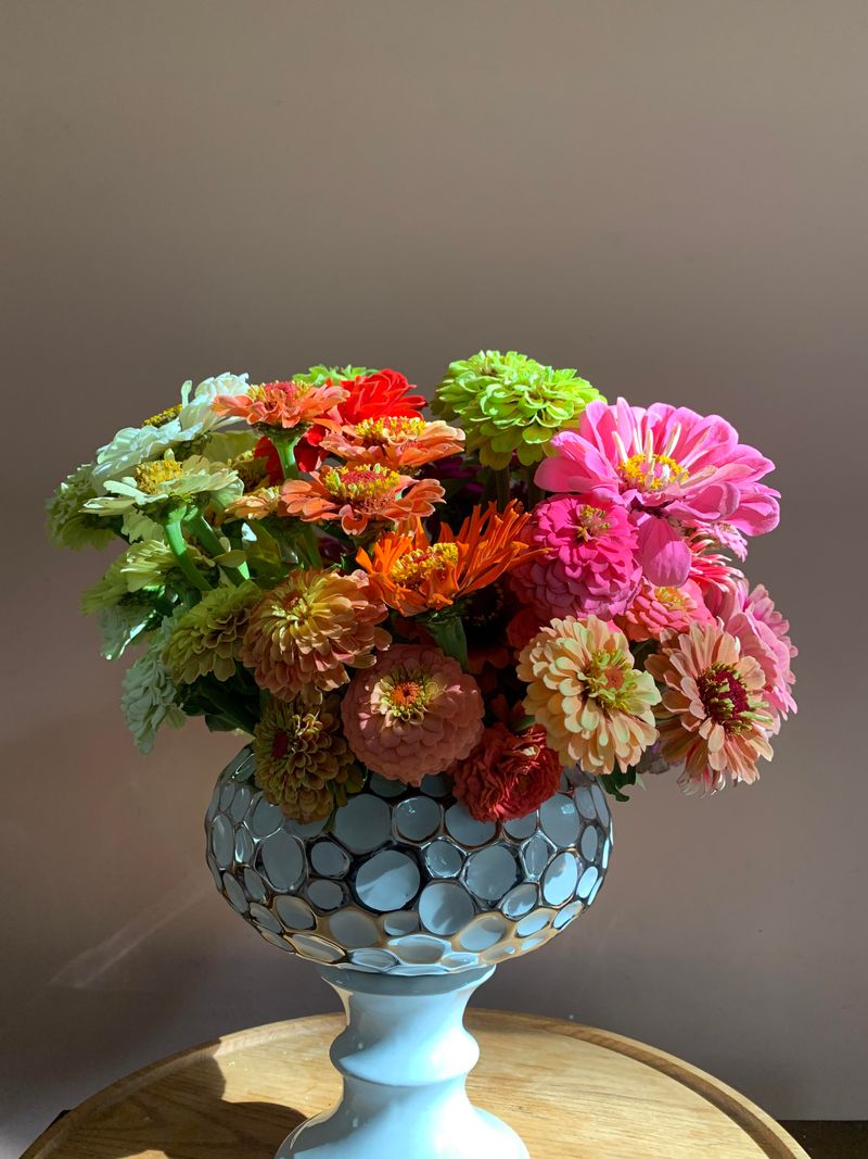Unlike roses or tulips, zinnias don’t continue opening after cutting. The perfect cutting stage is when blooms are fully open but before the center darkens. Look for flowers with vibrant petals and bright, fresh-looking centers without browning edges.