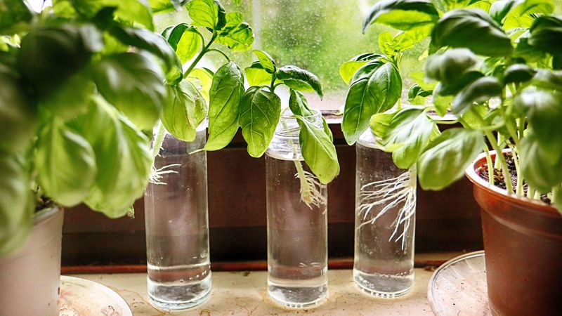 Once your basil has a healthy root system, consider transferring it to soil. Water-grown basil can thrive for a time, but soil can provide more nutrients for long-term growth.