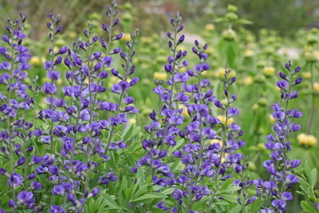 Introduce a bold presence with baptisia, also known as false indigo. Its deep-rooted structure and bushy growth make it an excellent weed suppressor while adding striking spikes of blue, purple, or yellow flowers.
