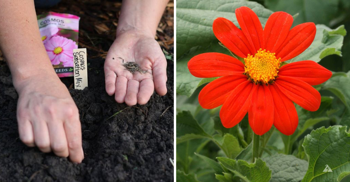 Sowing seeds directly in April, once the soil has warmed and frost risk has passed, gives tithonia enough time to grow large and bloom before the season winds down.
