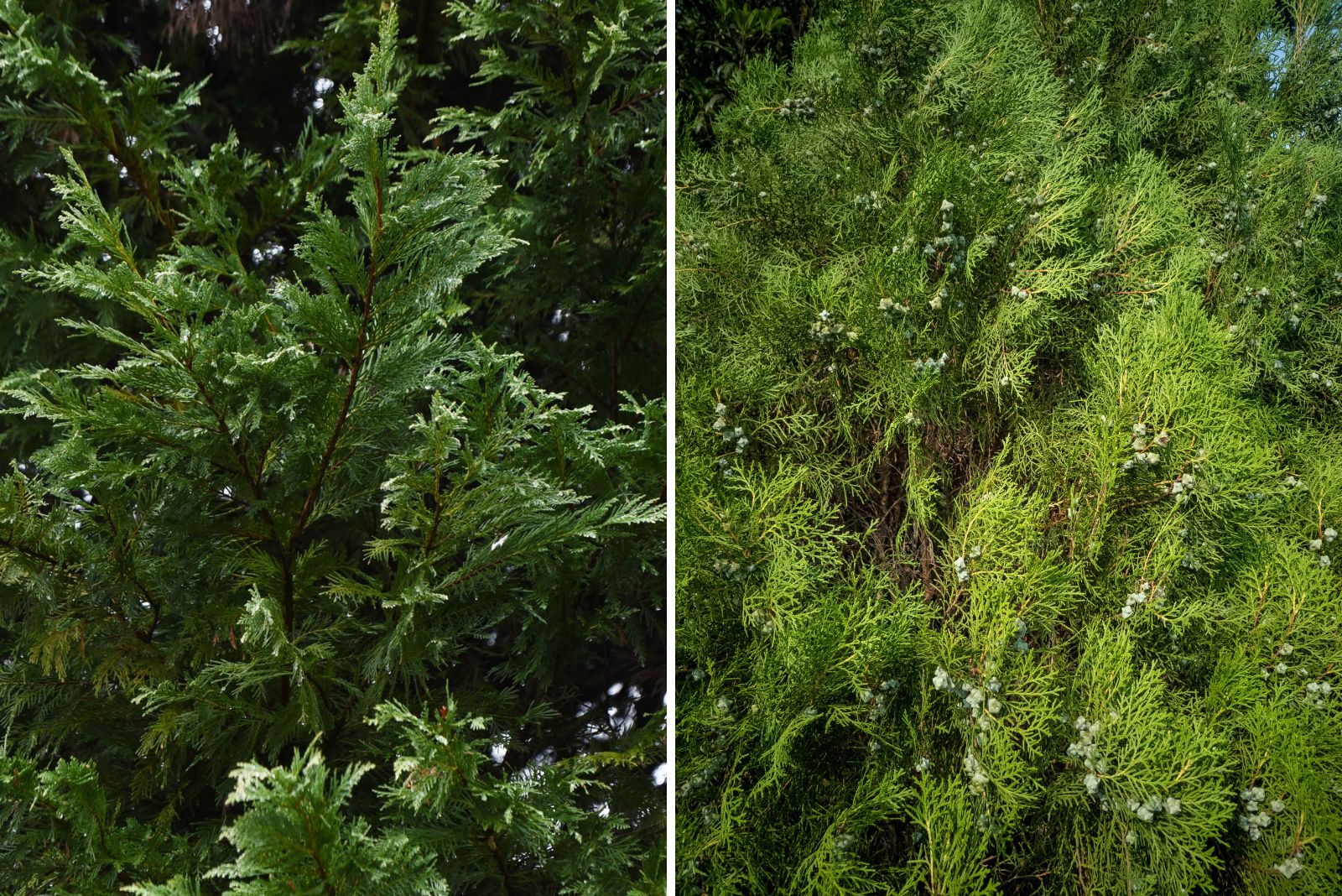 The blue-green foliage looks attractive year-round. Female trees produce small blue berries that provide important winter food for birds.