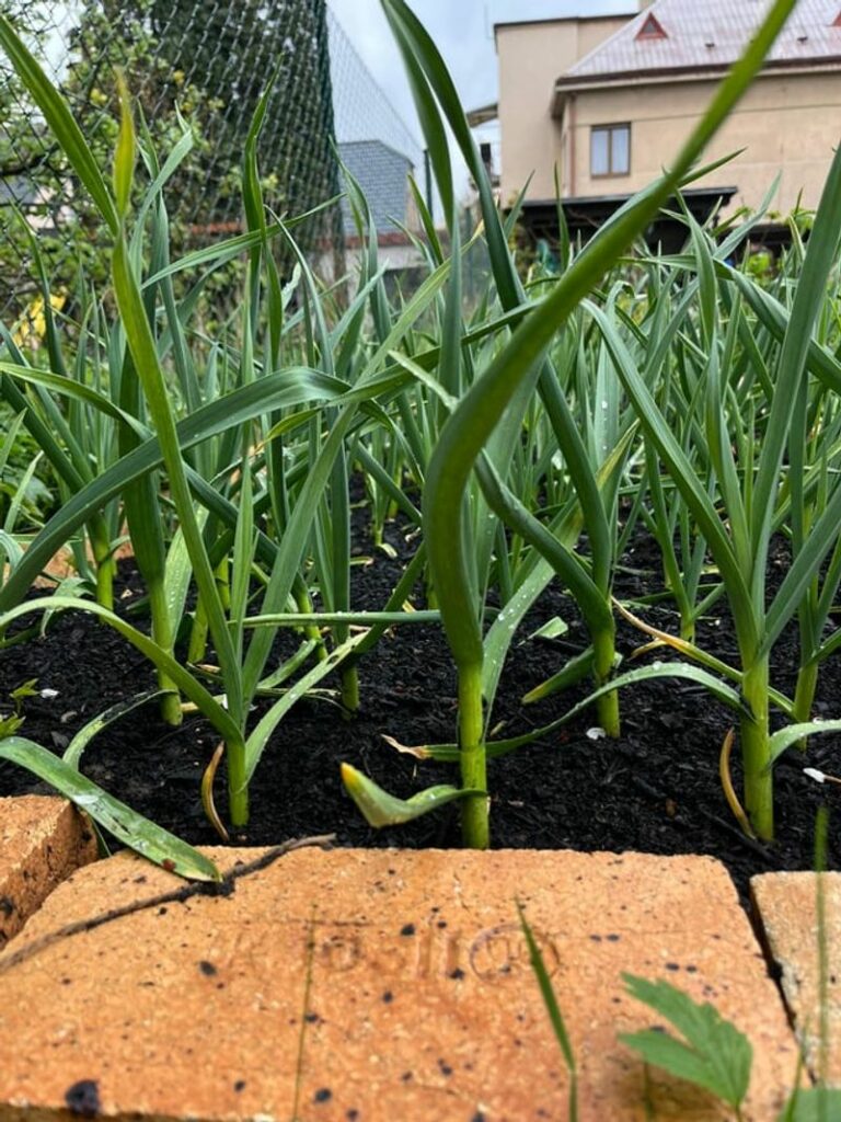 Garlic prefers loose, well-drained soil and plenty of sunlight. It does not take up much space and can be tucked in between other plants throughout your garden for maximum coverage.