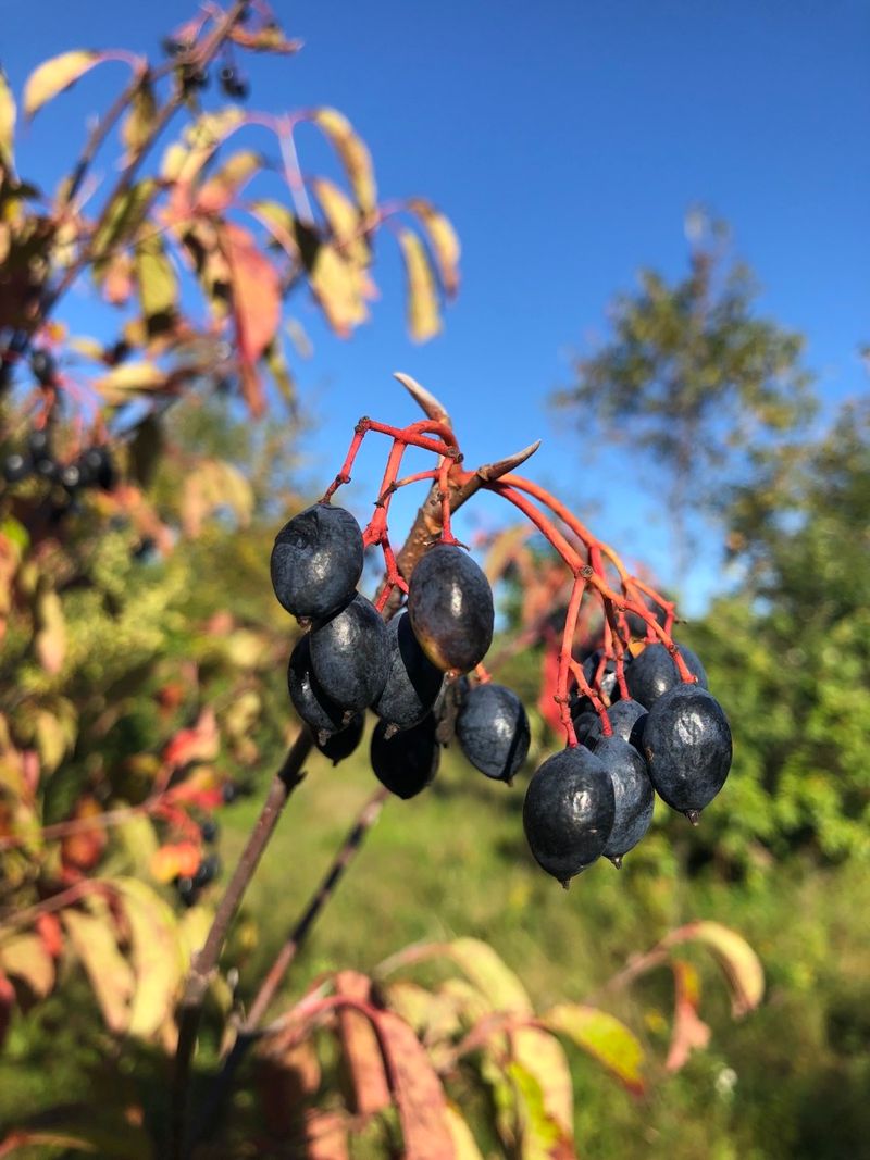 Dark berries on blackhaw viburnum make it a favorite among birds and a versatile shrub in the landscape. These shrubs thrive in diverse conditions, offering berries and shelter for wildlife.