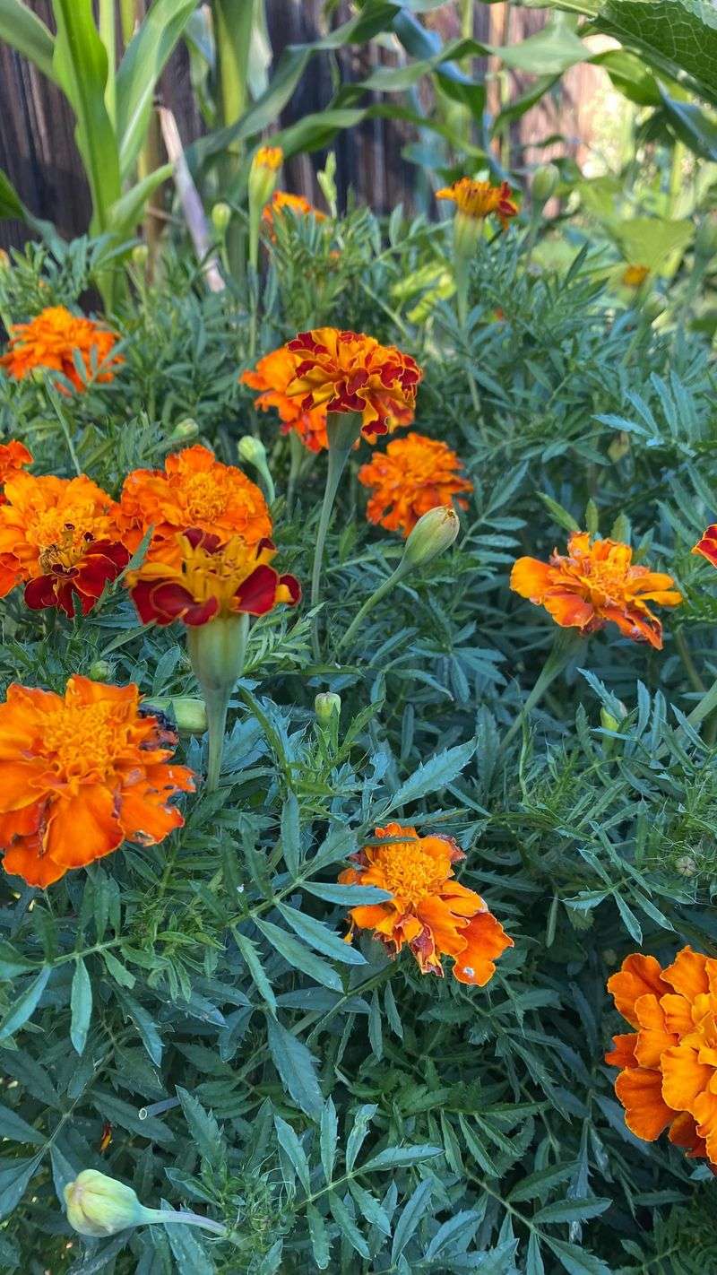 French marigolds create neat mounds covered with small, detailed flowers, while African types produce large pom-pom blooms on taller stems. Both keep flowering through heat, humidity, and even drought once established. The distinctive scent also helps deter certain garden pests naturally.
