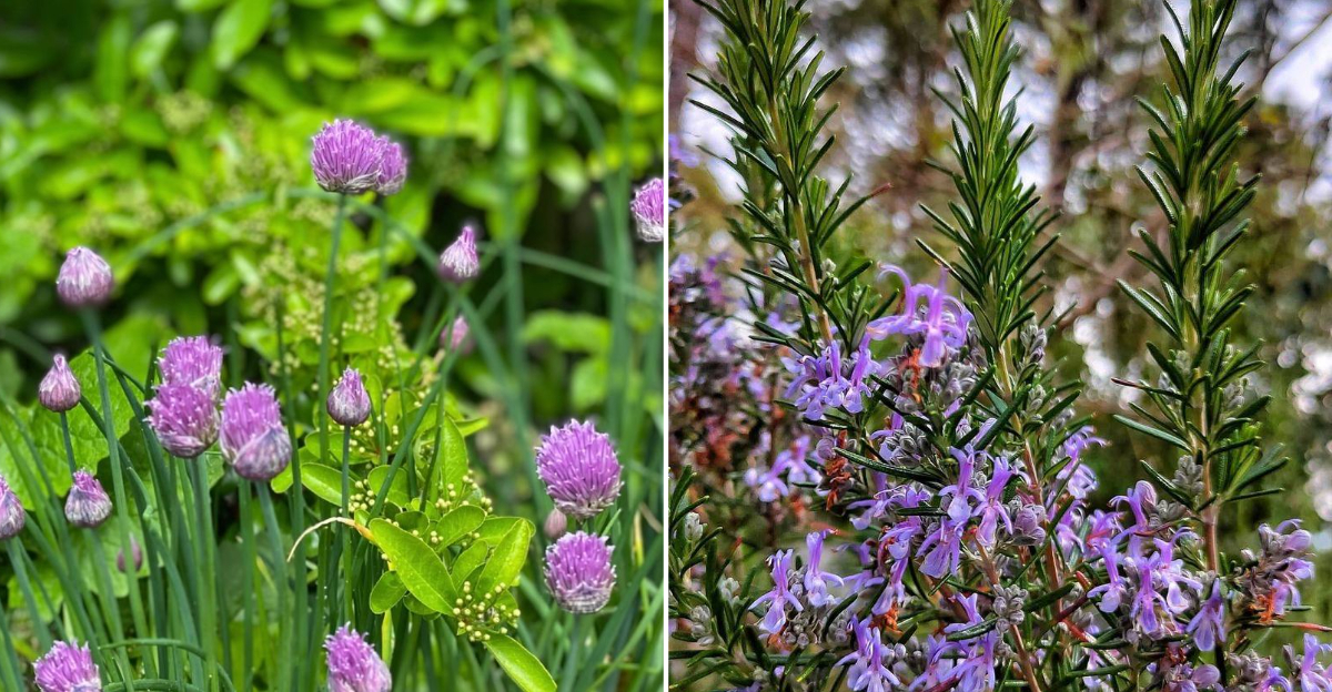 Their round purple flower heads are also edible and make a beautiful garnish. Those flowers attract pollinators too, which is always a bonus for any garden.