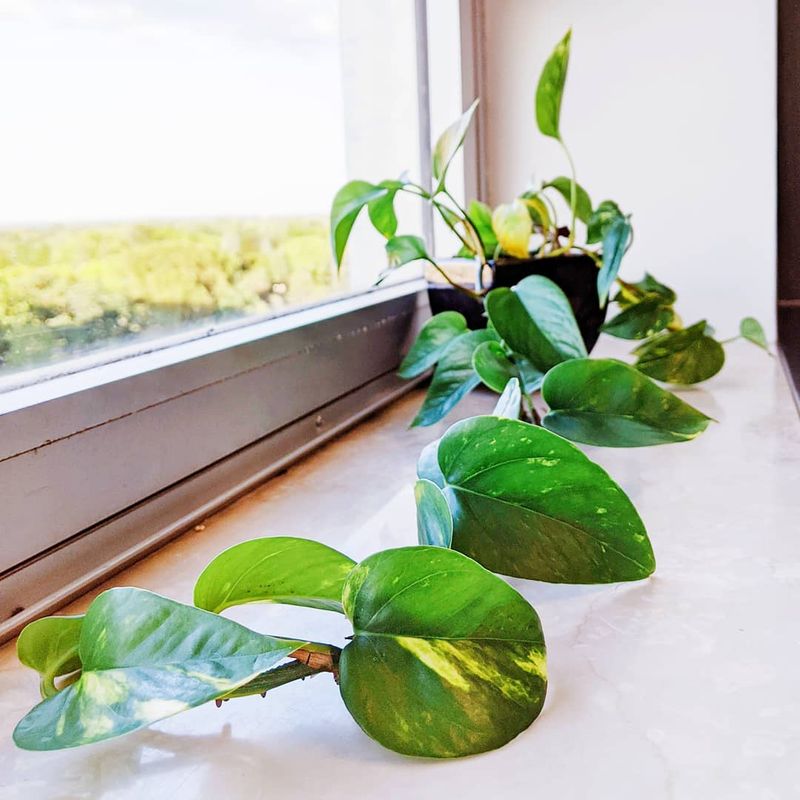Imagine trailing vines that spill over your windowsill like a living waterfall. The Pothos plant is known for its heart-shaped leaves and forgiving nature. It thrives in various lighting conditions, from bright, indirect light to low light.