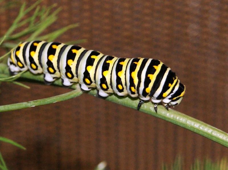 Found primarily on parsley, dill, fennel, and carrot tops, these caterpillars are actually harmless butterfly larvae. The first time I spotted one on my dill, I nearly removed it thinking it was dangerous – now I plant extra herbs specifically to host these beautiful creatures.