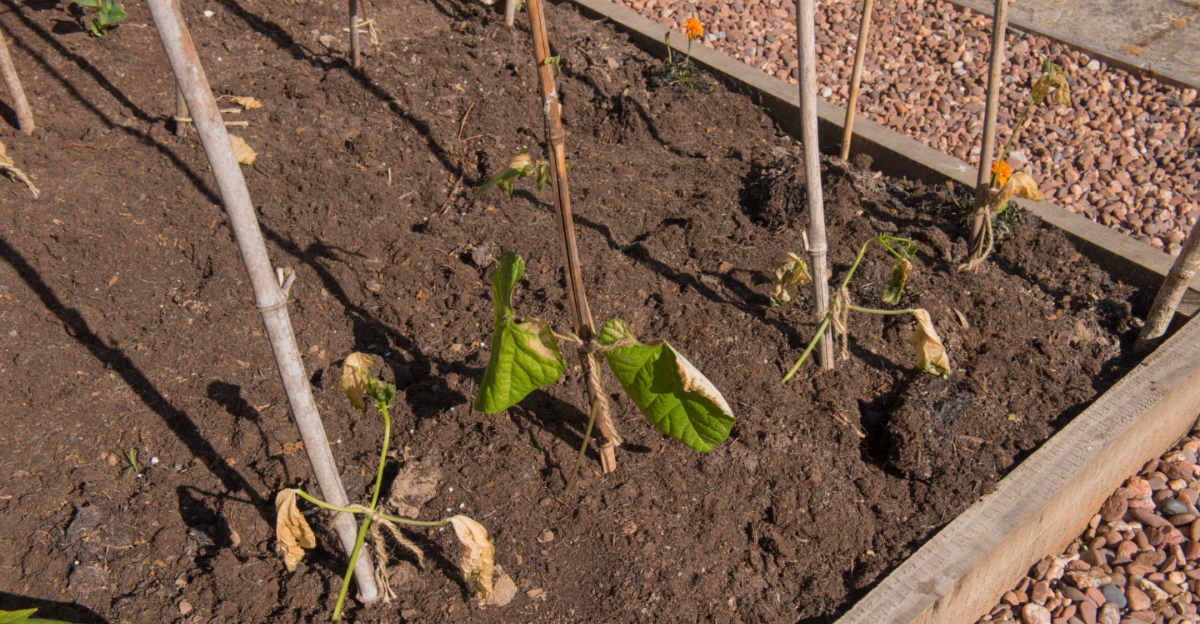 Bean seedlings are particularly at risk because their growing point sits above the soil surface from the moment they emerge. A hard frost can severely damage young bean plants, often requiring complete replanting.