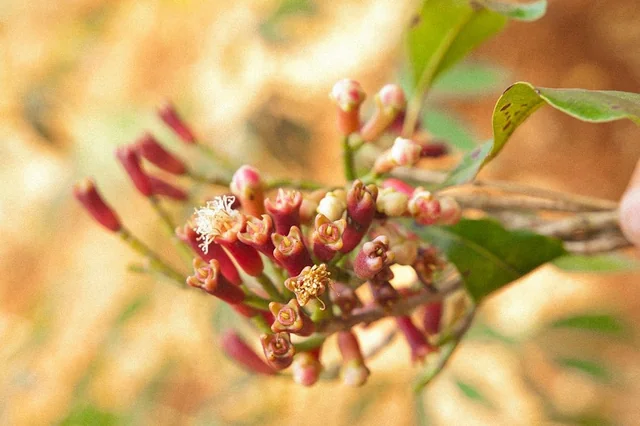 Clove buds are best picked just before they open into flowers, when they look full and slightly reddish brown rather than green.